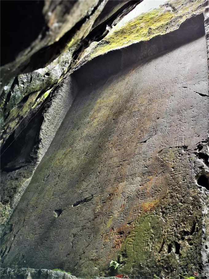元代书法家周伯琦所书《理公岩记》碑刻,位于青林洞口左侧洞穴两块巨石的缝隙坐西面东的岩壁上方,碑文高1.9米,宽1.5米,碑文篆书13行,字径约13厘米,共计211字,为凿岩平石凿刻。篆体书法,圆底阴刻,萧散自然,苍劲古拙,结构工稳。