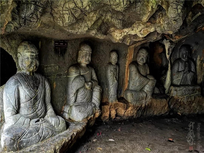 据碑文介绍,至正九年(1349)慧苣和尚来理公岩,将此处凋敝的寺院观堂(灵鹫寺)整修一新。十六年( 1356)江浙左丞杨公之弟伯颜到此游憩,为岩之异胜、景之清幽所动,遂捐资雇匠,载凿岩石,刻十佛并补陀大士(观音菩萨)像。