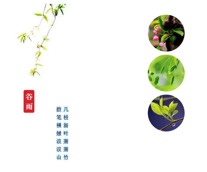 谷雨前,春雨还如云雾般迷离。谷雨一到,雨水便变得利落,一颗颗从天而降,落在花瓣上,落在屋檐上,挂在四月的枝头。
