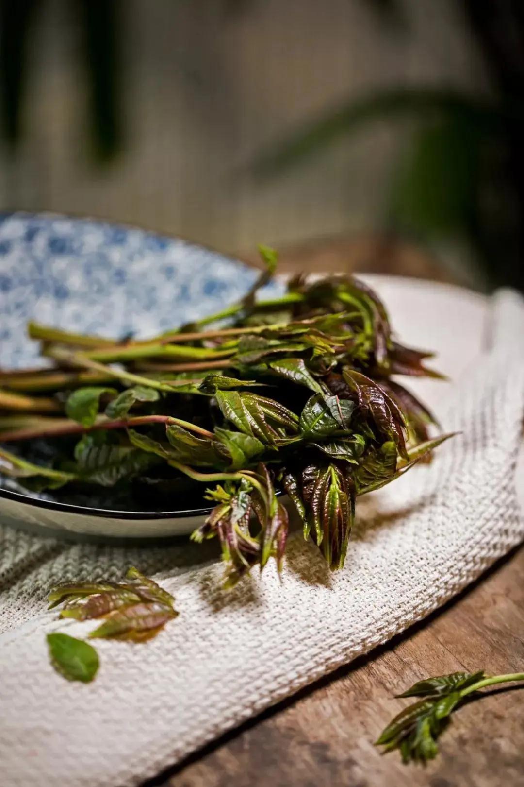 雨前香椿嫩如丝。谷雨前后,香椿可做成各种菜肴,异香浓郁。苏轼也曾用"椿木实而叶香可啖"来赞美这一节令鲜蔬。