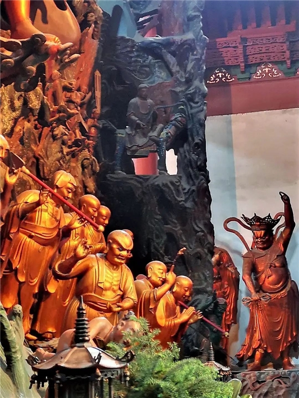 我国绘画、雕塑中的罗汉像有三种,即十六罗汉、十八罗汉和五百罗汉。十六罗汉见唐玄奘所译《法住记》,并载有其名字和住址,此书作者为公元二世纪时狮子国(斯里兰卡)庆友尊者。后人把庆友列为住世罗汉,又将第一尊“宾头庐颇罗堕”误为二人,遂成十八罗汉。
