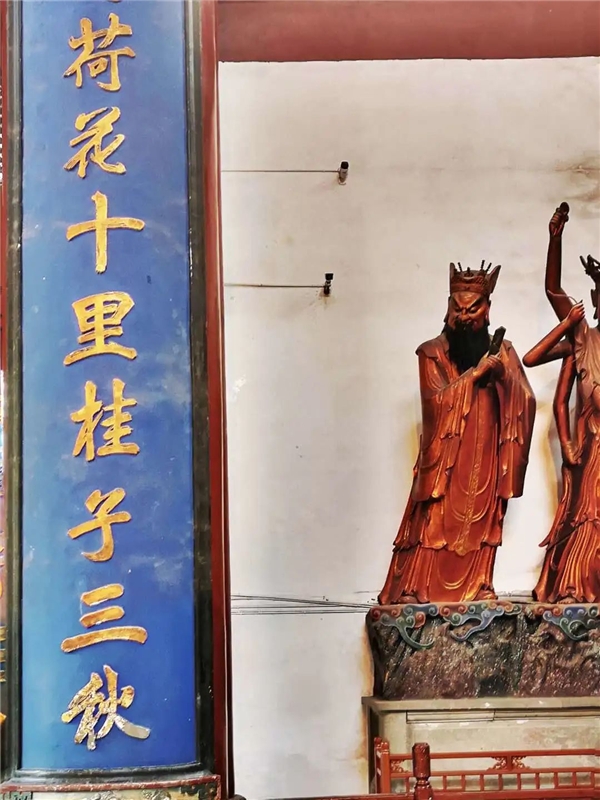 这种把历史佳话同古刹胜迹巧妙结合的艺术技巧,使楹联别开生面,内容不落俗套,妙趣横生,充满诗情画意。既赞美了千古胜迹,壮丽河山,又颂扬了宏扬民族文化的历代文豪。令人读之,心潮起伏,豪情满怀,意往神驰。