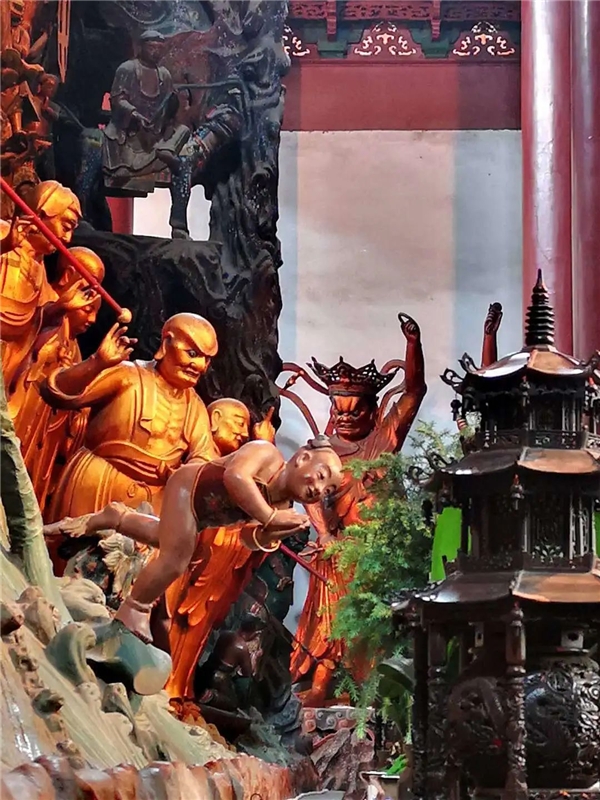 上联中“宝坊阅千载常新”等,是对灵隐寺的赞词,赞美灵隐寺历史悠久,已逾千年,但宝刹的殿堂楼阁,越发壮丽。