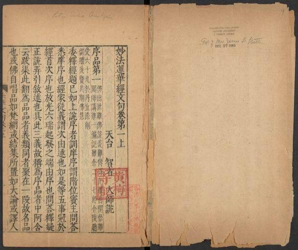 移锡光宅寺后,讲说《法华经》,由弟子灌顶法师随侍记录成《法华文句》,此后智者大师所讲经义,皆由灌顶法师录成书。