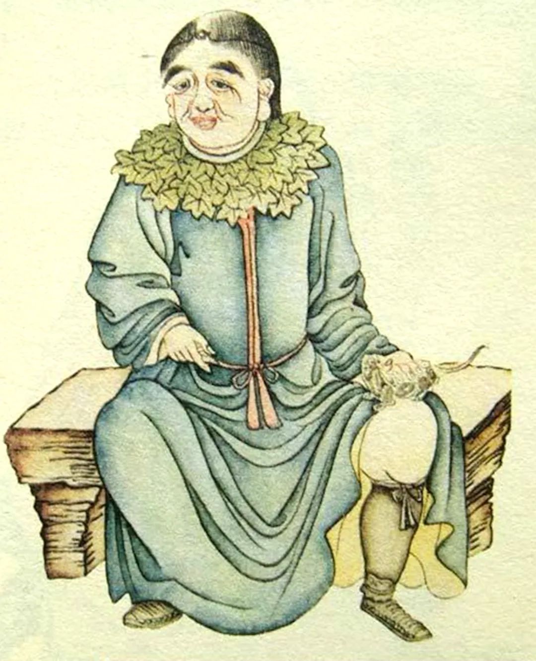 尊者法相所现为安然静坐,身披云肩,体态健硕,目光慈祥,平易近人。尊者精通佛法,熟读佛经,有无量功德,其学识和德行受佛陀器重。