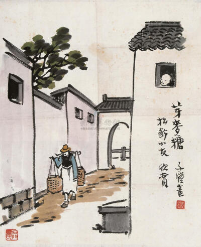 最后我回想到儿时所亲近的糖担。我们称这为“吹大糖”担。挑担的大都是青田人,姓刘。据父老们说,他们都是刘基的后裔。刘伯温能知未来,曾遗嘱其子孙挑吹大糖担,谓必有发达之一日。因此其子孙世守勿懈。又闻吾乡有刘伯温所埋藏宝物多处,至今未被发掘,大约要留给挑吹大糖担者发掘的,我家邻近一带门口,据说旧有一个石槛,也是刘伯温设置的,谓此一带永无火灾。我幼时对于这种话很感兴味,因此对于挑吹大糖担者更觉可亲。我家邻近一带,我生以来的确没有遭过火灾;我生以前,听大人说也没有遭过火灾。但我看见挑吹大糖担的人,大都衣衫褴褛,面有菜色,似乎都靠着祖先的遗言在那里吃苦。而且我问他们,有几个并不姓刘,也不是青田人而是江北人。兴味为之大减。以问父老,父老说,他们恐怕我们怪他们来发掘宝物,故意隐瞒的。我的兴味又浓起来。每闻“铛,铛,铛”之声,就向母亲讨了铜板,出去应酬他,或者追随他,盘问他,看他吹糖。他们的手指技法很熟,羊卵脬,葫芦,老鼠伦油,水烟筒,宝塔,都能当众敏捷地吹成,卖给我们玩,玩腻了还好吃。他们对我,精神上,物质上都有恩惠。“铛,铛,铛”这声音,现在我听了还觉得可亲呢。因为锣声暗示力比前两者尤为丰富。其音乐华丽,热闹,兴奋,而堂皇。所以我幼时一听到“铛,铛,铛”之声,便可联想那担上的红红绿绿的各种花样的糖,围绕那担子的一群孩子的欢笑,以及糖的甜味。我想象那锣仿佛是一个慈祥,欢喜,和平,博爱的天使,两手擎着许多华丽的糖在路上走,口中高叫“糖!糖!糖!”把糖分赠给大群的孩子。我正是这群孩子中之一人。但这已是三十年的旧心情了。现在所谓可亲的,也只是一种虚空的回忆而已。朦胧中我又想起了“一宿行人自可愁”之句,黯然地入了睡乡。