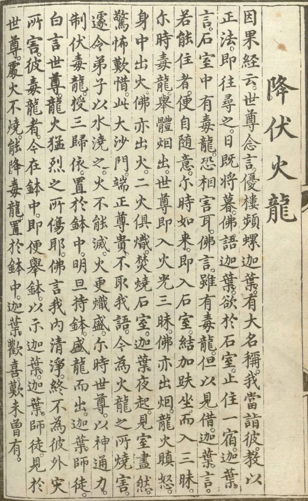 日既将暮。佛语迦叶。欲于石室止住一宿。迦叶言。石室中有毒龙。恐相害耳。佛言。虽有毒龙。但以见借。迦叶言。若能住者。便自随意。