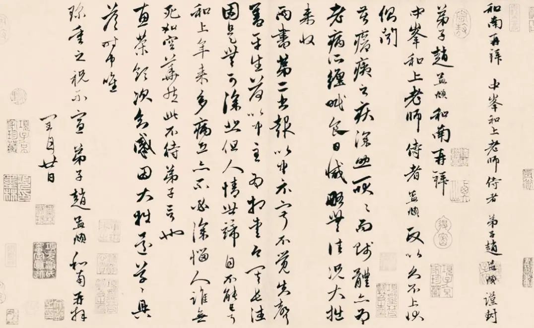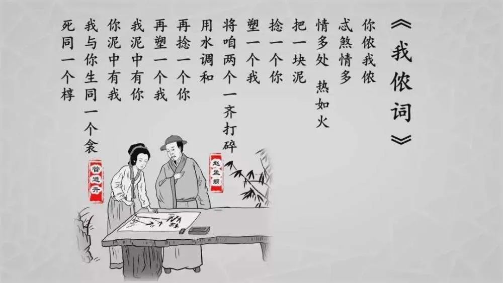 很多人可能都听过这首《我侬词》,或许也曾被其中的真切情意打动。管道升是元代著名的女书法家、画家、诗词创作家,她的丈夫赵孟頫是元朝官员,也是大书法家、画家、诗人。这首词的背后是关于他们夫妻二人的一个广为流传的故事。赵孟頫身在官场,外境诱惑颇多,难免欲心偶动。有一次想纳妾,但又不敢启齿,就写了一词送给夫人:“我学士,尔夫人。岂不闻:陶学士有桃叶、桃根,苏学士有朝云、暮云。我便多娶几个吴姬、越女,也无过分,你年纪已过四旬,只管占住玉堂春。”管夫人看后,内心明白,未道究竟,也填了一首词回敬,就是那首著名的《我侬词》:“你侬我侬,忒煞情多。情多处,热似火。把一块泥,捻一个你,塑一个我。将咱两个,一起打破,用水调和,再捏一个你,再塑一个我。我泥中有你,你泥中有我。我与你生同一个衾,死同一个椁。”管夫人只字未提纳妾之事,只道出两人无法分割之情谊,赵孟頫看后深受感动,遂打消此念。赵孟頫和管道升婚结得晚,彼时赵已三十五六,管也二十有八。但二人兴趣爱好相同,感情和睦,可谓天作之合。赵孟頫博学多才,能诗善文,通经济之学,工书法、精绘艺、擅金石、通律吕、解鉴赏,声名卓著。而且他为人仁厚,立身正直,当官后为政清廉,还常靠书画补贴家用。管道升,世称 “ 管夫人 ”,亦是天资聪慧,才华横溢,翰墨辞章,无一不善。赵孟頫夸赞自己的夫人说:“不学诗而能诗,不学画而能画,得于天然者也”。元朝仁宗皇帝很敬重赵孟頫和管夫人,曾取管道升的书法,与赵孟頫及其次子赵雍的书法用玉轴精装,钤上御印,藏于秘书监,并说:“让后世知道我朝有一家的夫妇父子都善书,这也是奇事啊!” 在世间得一如意眷属,相契相合,本已难得。更令人羡慕的是,赵孟頫和管道升还同是修行人,更是出世间的法侣。其夫妻二人皆笃信佛法,并一起皈依中峰明本禅师。明本禅师,号中峰,法号智觉,元代著名高僧。他从小喜欢佛事,稍通文墨就诵经不止,常伴灯诵到深夜。24岁赴天目山,受道于禅宗寺,白天劳作,夜晚孜孜不倦诵经学道,遂成高僧。曾作《怀净土诗》一百零八首,阐扬净土思想,《净土十要(附本)》多有收录。