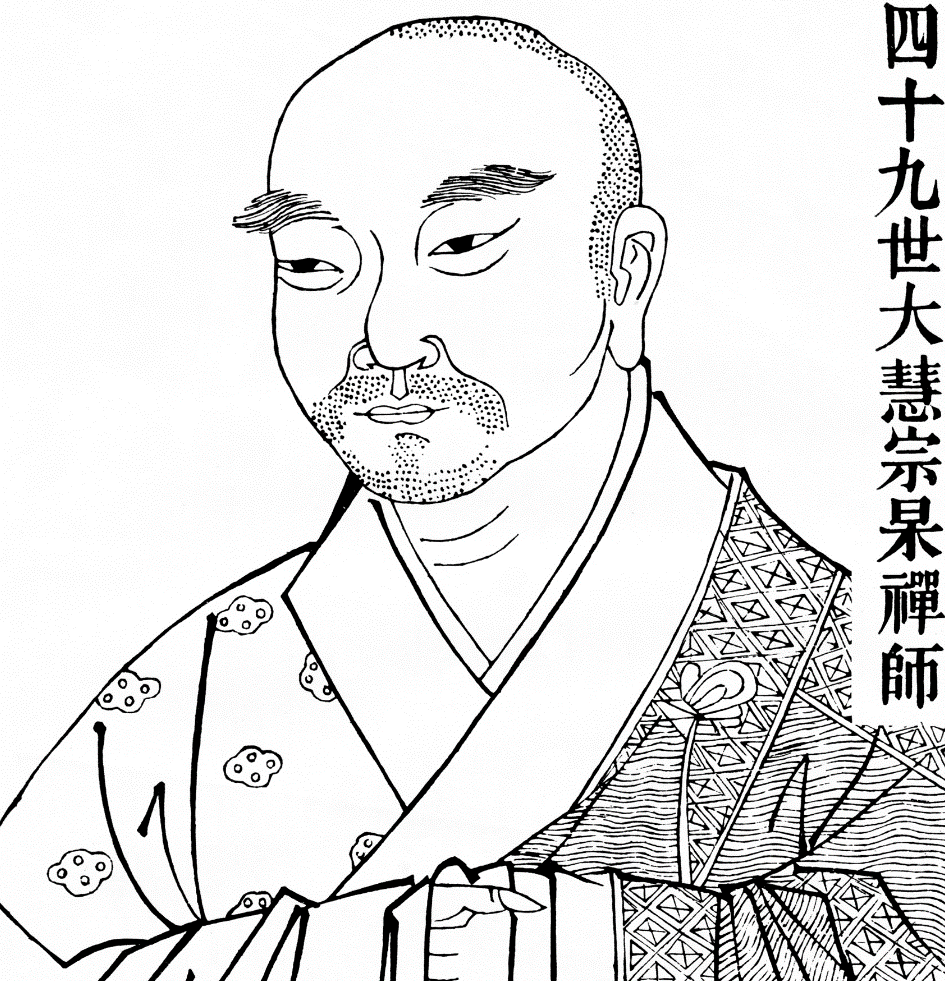 大慧宗杲禅师(1089—1163),俗姓奚,宣州宁国(今属安徽)人。宗杲禅师天生英气勃勃,十二岁入乡校读书。一天,宗杲禅师因与同窗戏闹,本想拿砚台投击对方,不小心却误中教书先生的帽子,将帽子弄脏了。先生大怒,让他赔钱,并将他赶回家。这件事情激发了宗杲禅师出家的愿望,他说:“大丈夫读世间书,曷若究出世法?”于是他便只身前往东山慧云院,从慧齐禅师出家。