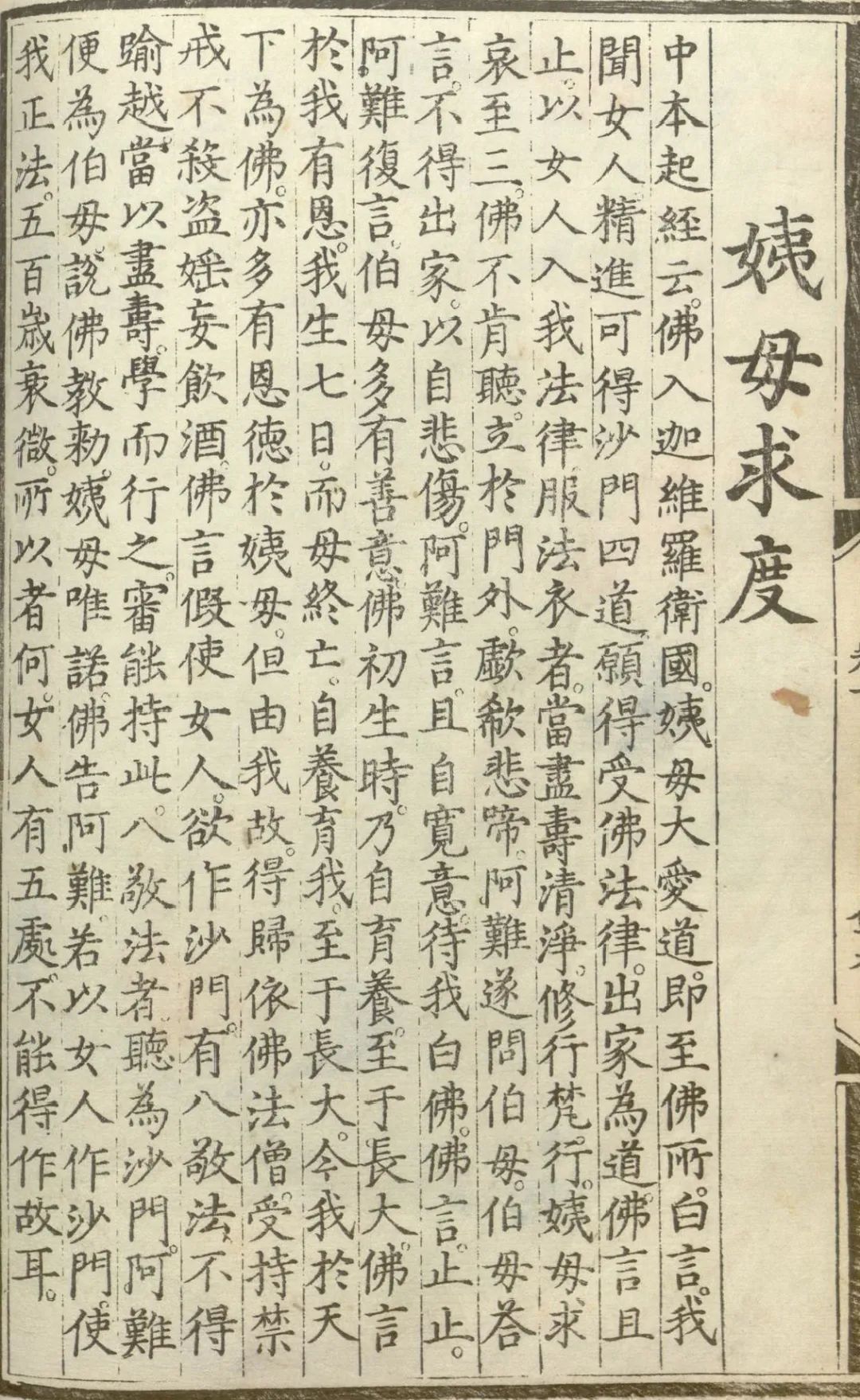 中本起经云。佛入迦维罗卫国。姨母大爱道即至佛所。白言。我闻女人精进。可得沙门四道。愿得受佛法律。出家为道。佛言。且止。以女人入我法律。服法衣者。当尽寿清净修行梵行。