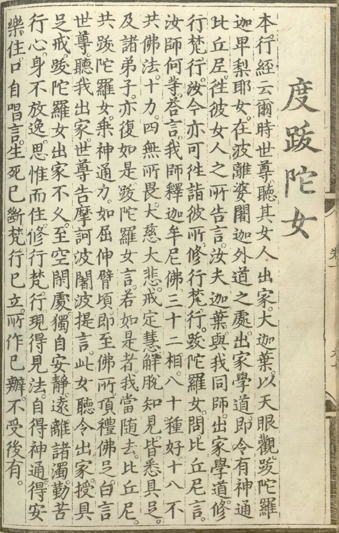 比丘尼共跋陀罗女。乘神通力。如屈伸臂顷。即至佛所。顶礼佛足。白言。世尊听我出家。世尊告摩诃波阇波提言。此女听令出家。授具足戒。