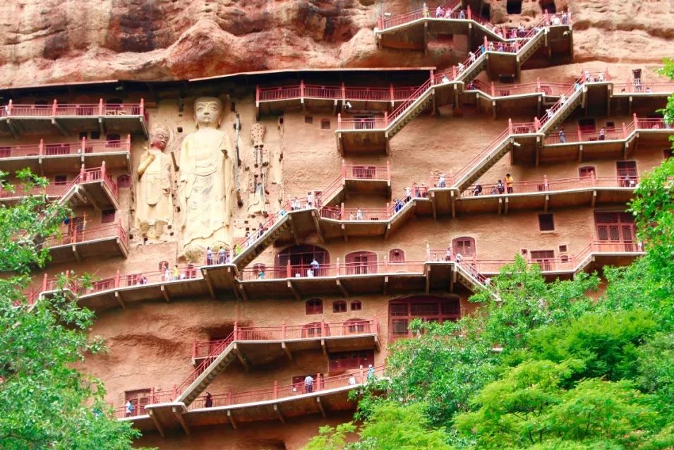 龙门的东方,有巩县(河市省)石窟,也是景明年中(500—503)所营造。还有天水麦积山石窟,也是北魏时代所开凿。这个石窟,在高出地面数十丈的万佛洞内,有深广五丈余的长方洞,内有大佛造像二十五躯,巨碑十八座,碑上浮雕佛像三十四排,每排二三躯,碑侧也刻有佛像,并有壁画。