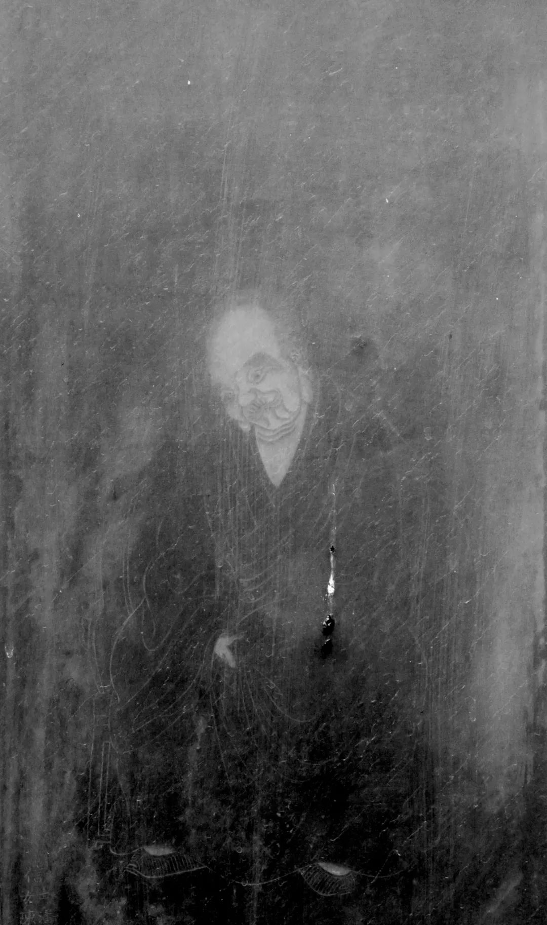尊者法相所现为安然静坐,双手笼袖,头低垂,双目圆睁,面含苦楚。尊者禀性聪慧,音乐天赋极高,虽犯下错误,但能改恶从善,虔心修行,多行善事。