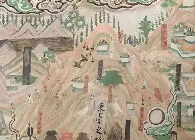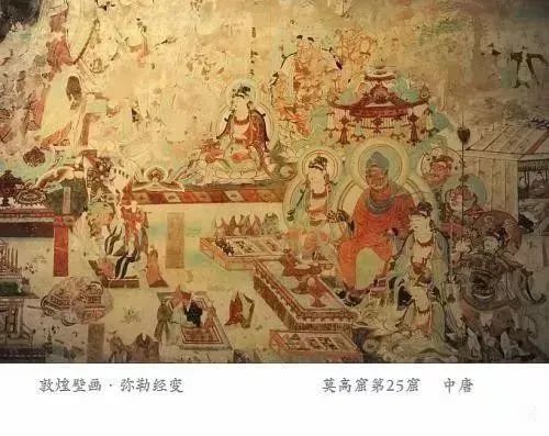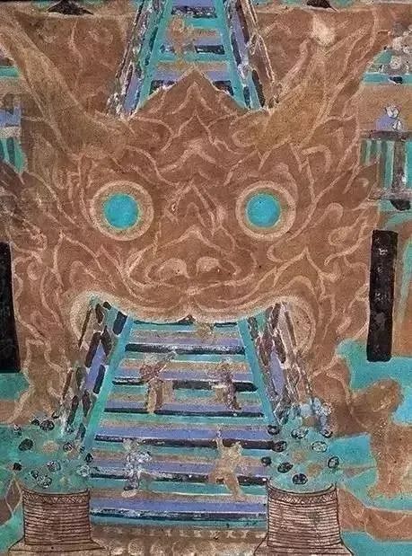 比如莫高窟壁画中有牛头山图,是佛教自印度经于阗东传中国的缩影之一。莫高窟第454窟牛头山圣迹图中就有登天梯的画面,天梯巧妙的穿过牛头,攀登天梯的人显的极为渺小,画师绘制通过大小对比,凸显出牛头庞大的体量感。牛头山据说就在今天新疆的和田绿洲西南部。