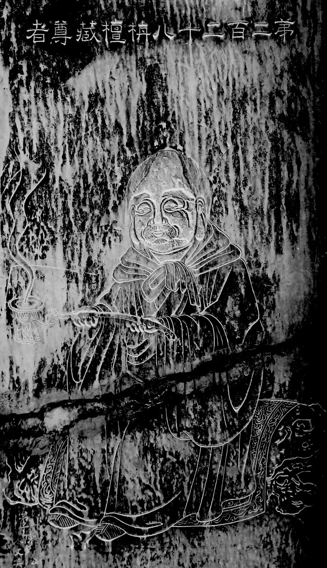 五百罗汉第贰佰贰拾捌尊栴檀藏尊者,即旃檀藏菩萨。旃檀是一种树,能发出浓郁的香味。