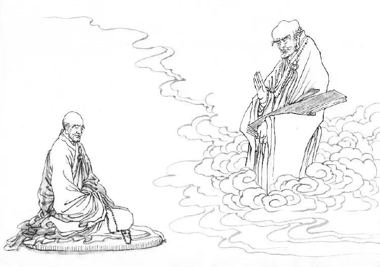 大师于当晚,在念佛道场遇到一老人,老人对大师说:“法师曾发愿朝拜五台,为何迟迟不行呢?”大师回答:“障难甚多,路途遥远,怎么去得了呢?”老人说:“只要肯下决心,道路遥远崎岖又怎能挡得住呢?”说完,倏尔不见。大师又惊又喜,在佛像前重新发誓,待念佛法会期满,即当起程,纵然火聚冰河,终不退志。于是,偕同志数人慨然上路,旅途果然顺利。