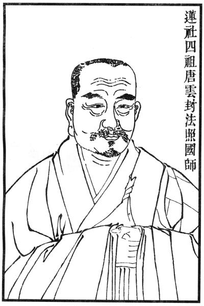 法照大师(747—821),身世事迹多不详。一说大师是南梁人,初由东吴来庐山,慕远公芳踪,结西方道场,专修禅观。一日入定往极乐世界,见承远大师侍于佛侧而大惊悟,永泰年中(765—766),登南岳衡山,师从承远大师受净土法,后始修念佛法门。
