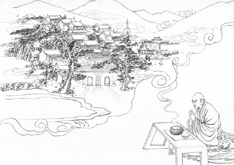 顷时,刚才的景物倏然隐去,大师心中倍增悲感,便在原地立石作记,用资纪念。后蒙一老梵僧的劝告,将所见所闻宣示诸道友,并在原地仿建一庄严的寺庙,名为竹林寺。