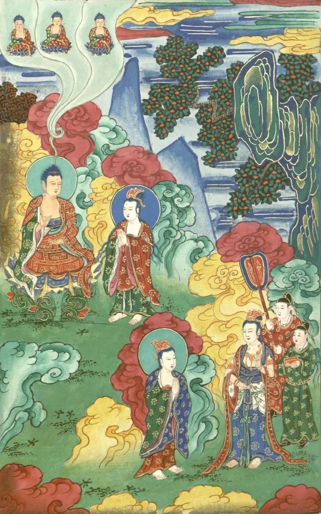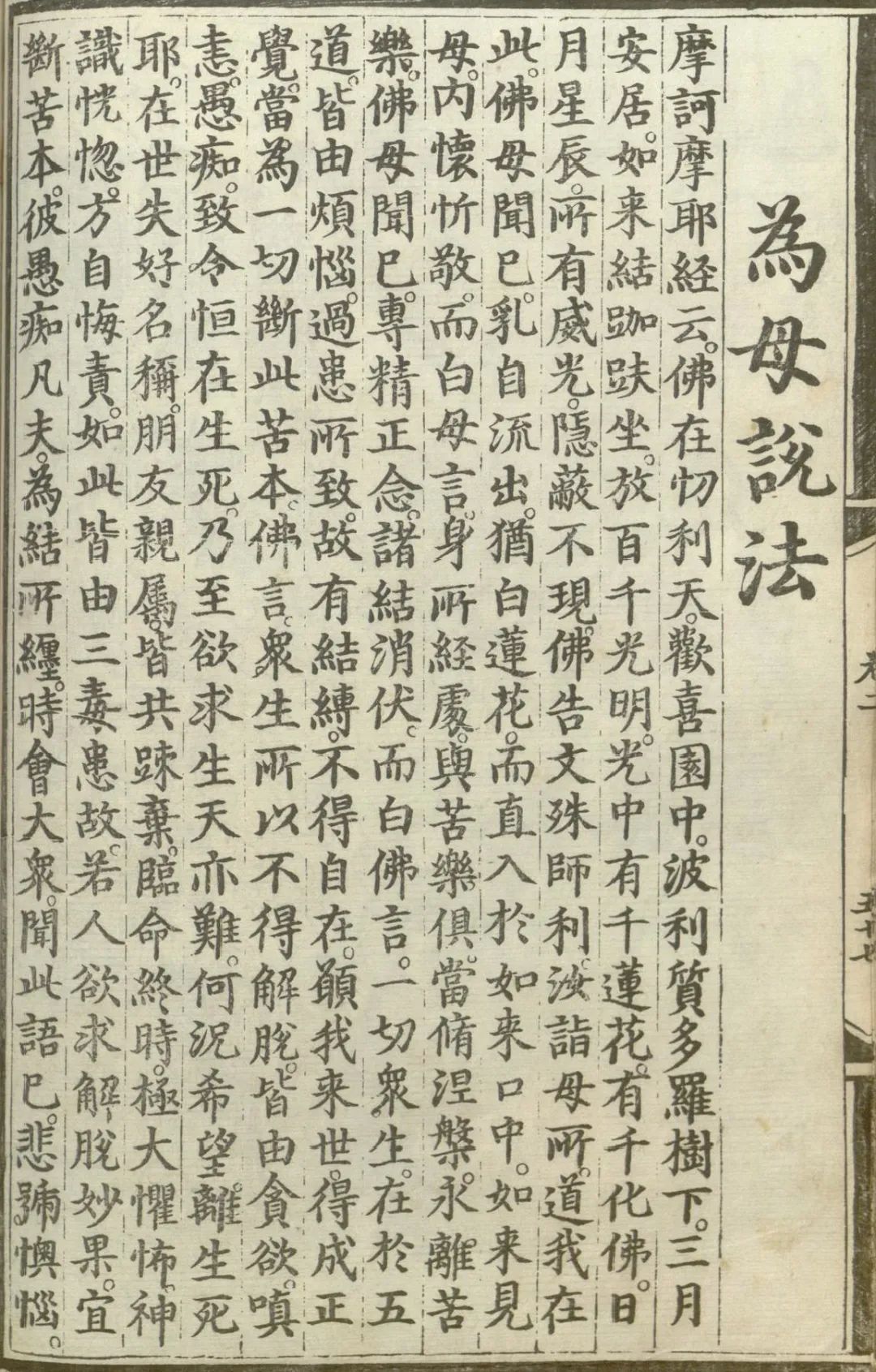 佛对文殊师利说:“你去告诉我母亲,说我在这里。”佛母得知佛在忉利天上欢喜园中,便来相见。如来见母,内怀忻敬,对母亲开示说:“无论身居何处,都难免与苦乐相对,当修涅槃道,才能永离苦乐。”