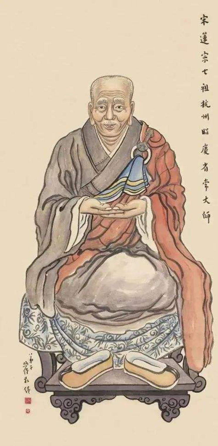 在南宋四明石芝宗晓所编《乐邦文类》里,即以莲社为专宗,和禅、教、律并称;还以善导、法照、少康、省常、宗赜上承慧远为净土教的历代祖师。其后志磐更改定为七祖(从慧远而下为善导、承远、法照、少康、延寿、省常),一直为后世所沿用。