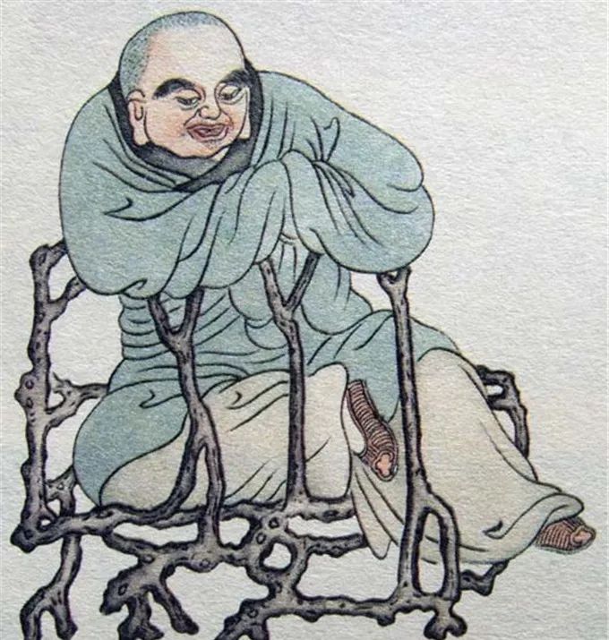 尊者法相所现为坐于树杈之间,面如满月,浓眉亮目,眼含慈悲。