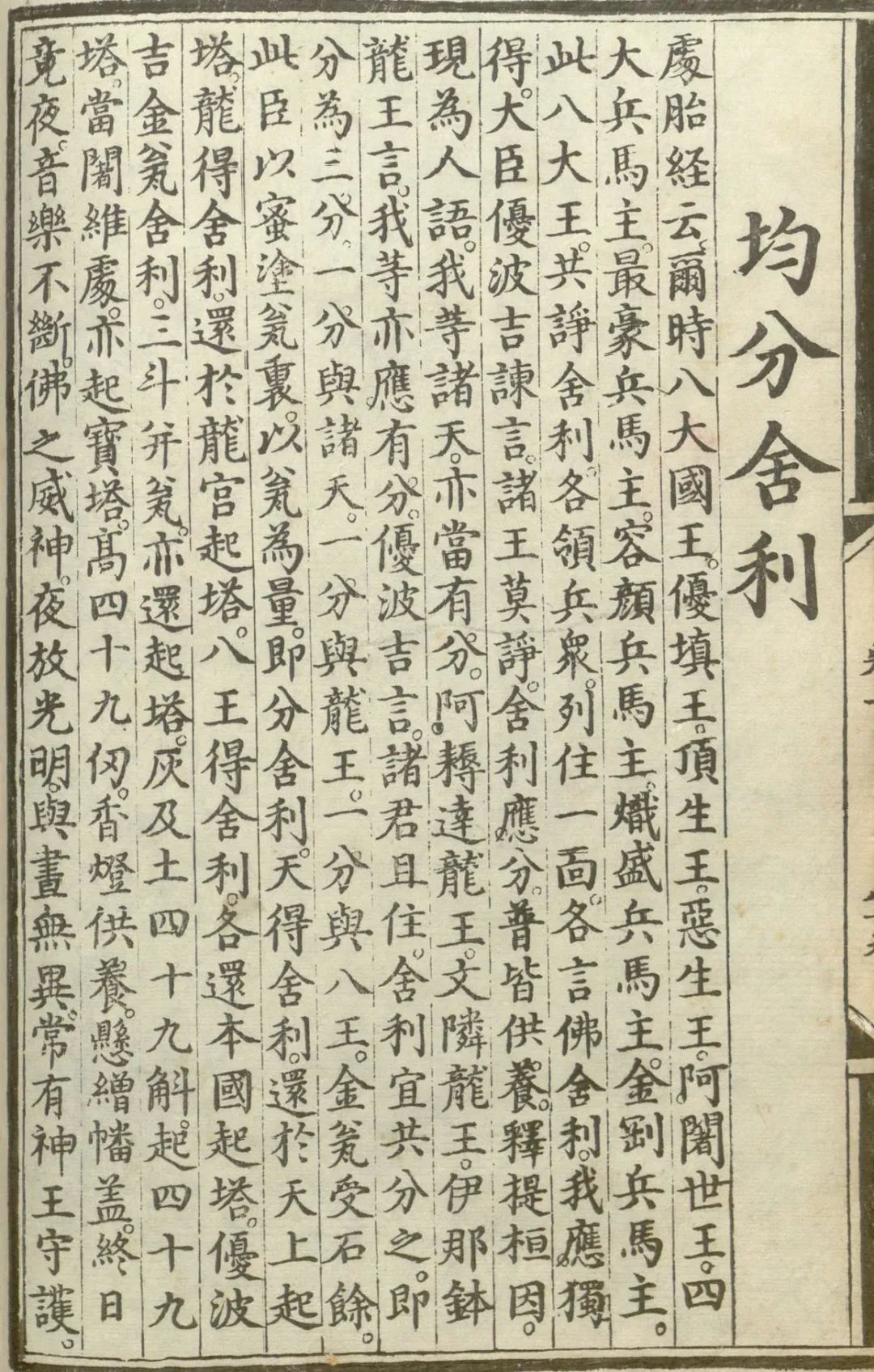 优波吉言。诸君且住。舍利宜共分之。即分为三分。一分与诸天。一分与龙王。一分与八王。金瓮受石余。此臣以蜜涂瓮里。以瓮为量。即分舍利。