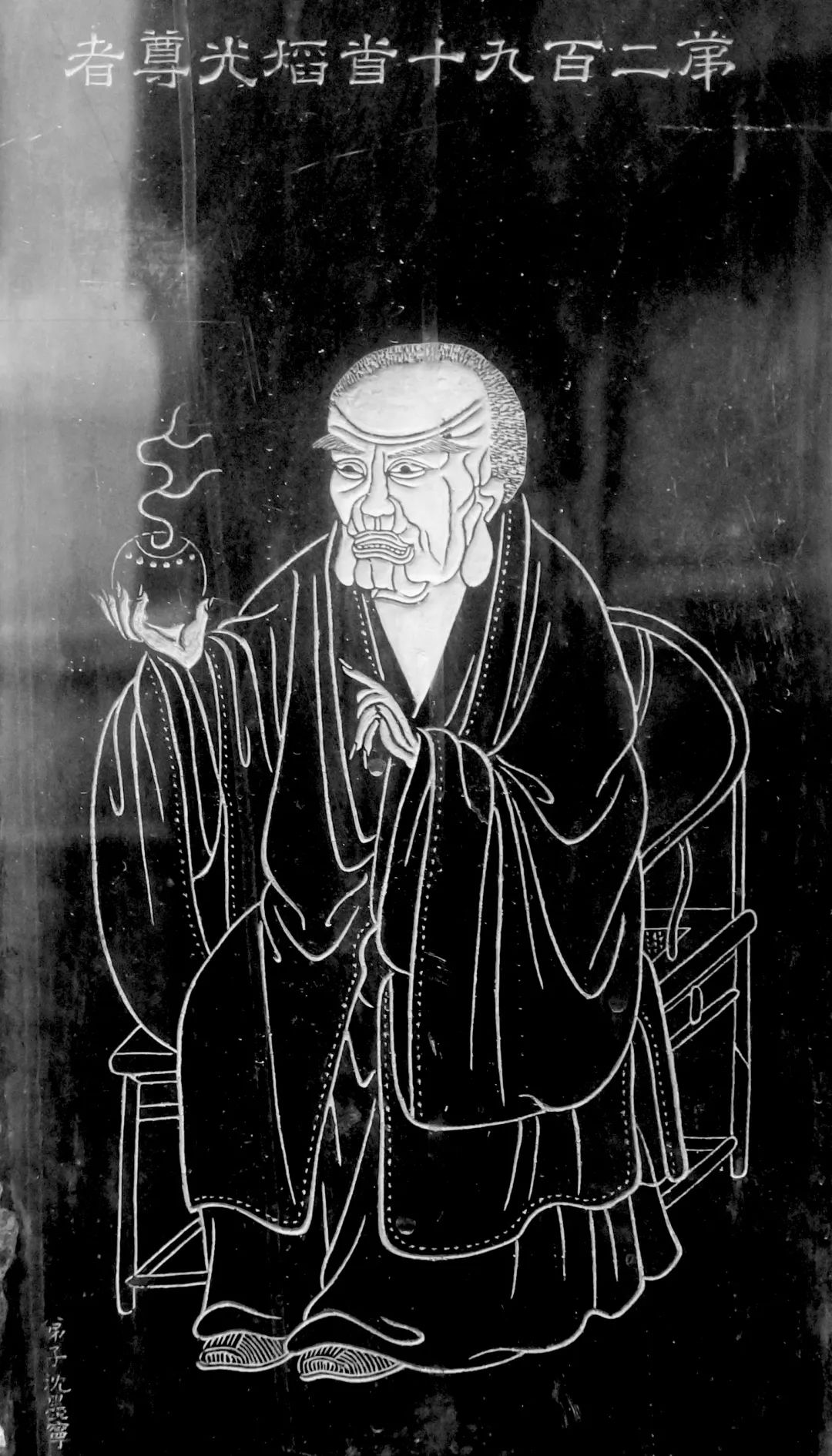 五百罗汉第贰佰玖拾尊首焰光尊者,即大焰光菩萨,位居上首。