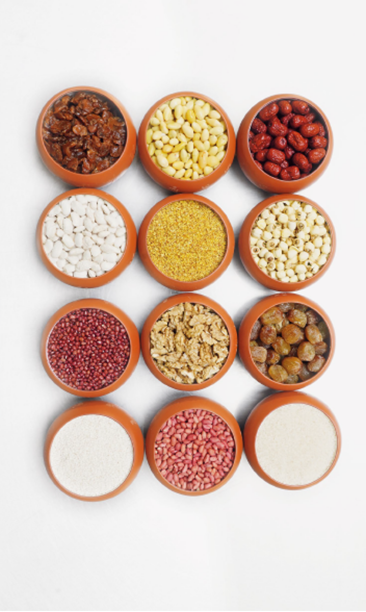 桂圆肉、粳米、糯米、核桃仁、蜜枣、莲子洗净备用。