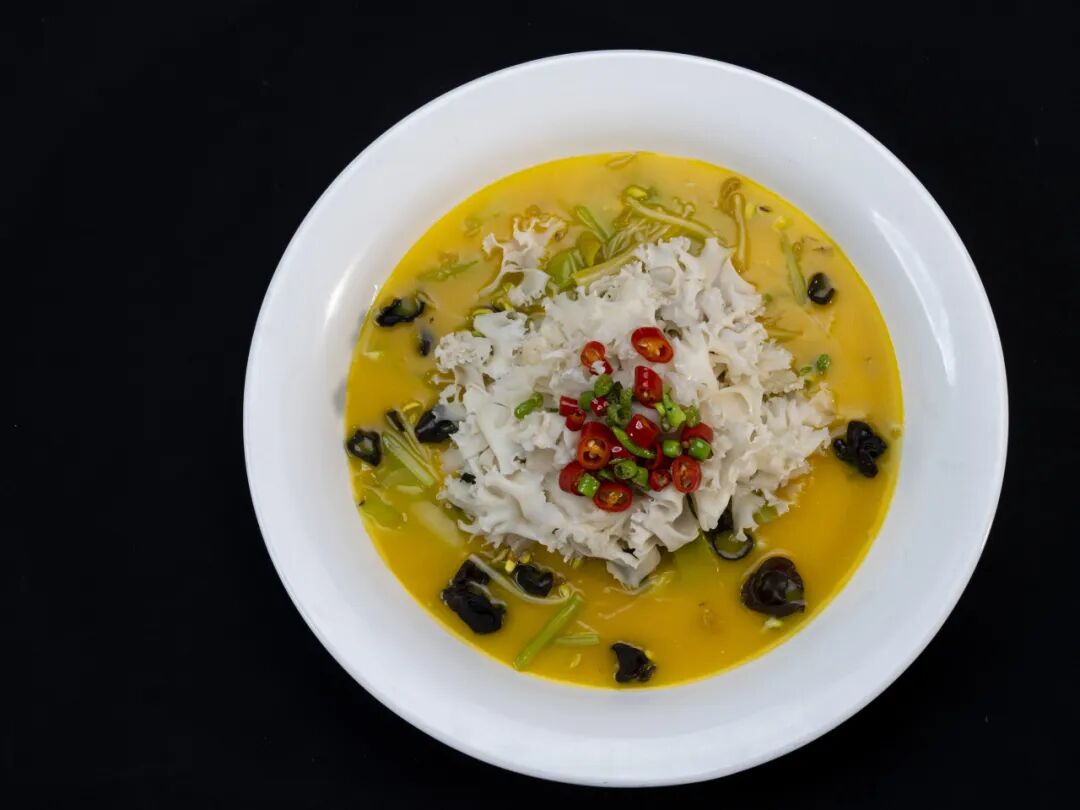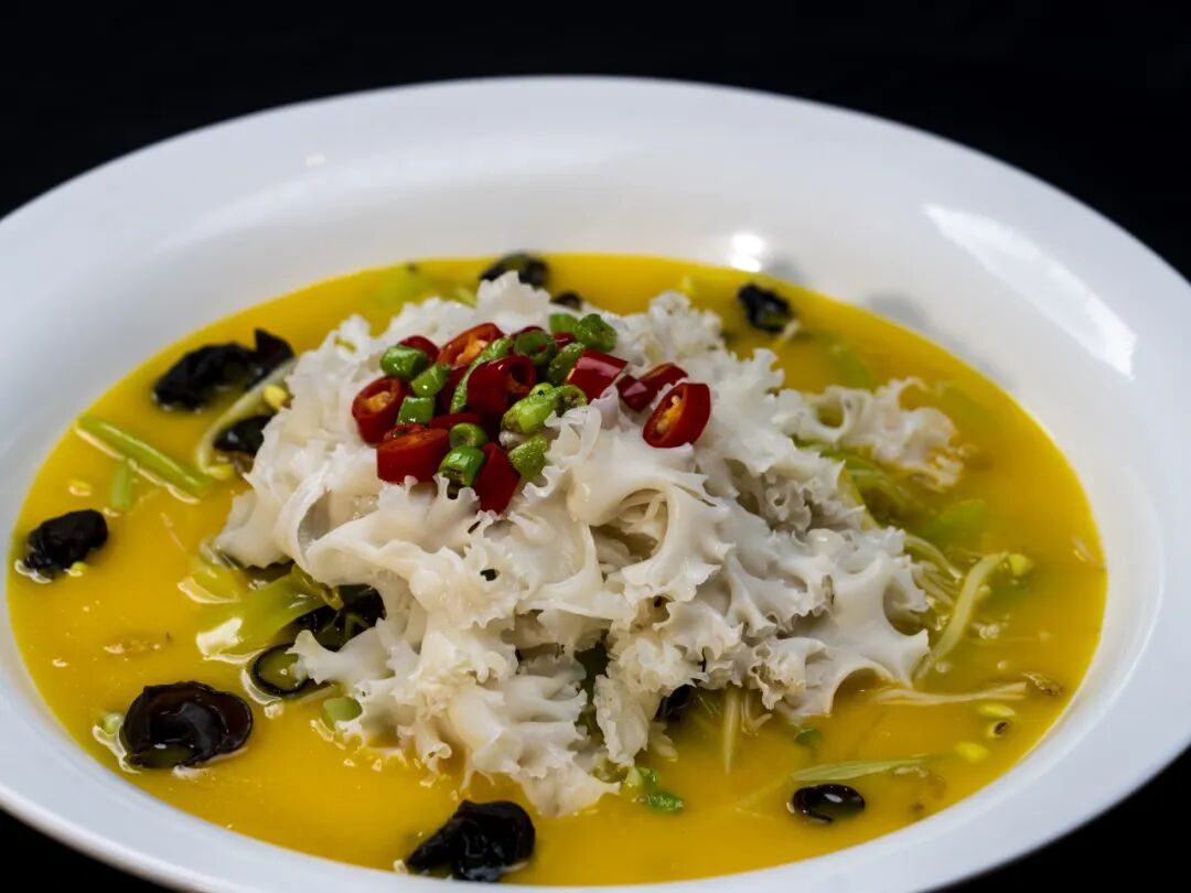 禅绣清泉(酸汤绣球菌)是清爽醇厚的酸汤与绣球菌的完美结合,口感细腻,令人唇齿留香。