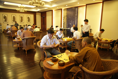 中午在灵隐寺用过素斋后,双方于下午进行了愉快的"手谈"。