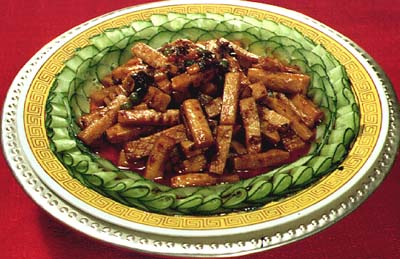 制 法: 冬筍切片,剞十字花刀后切粗長條,冬菇、胡蘿卜切丁,鄲縣豆瓣剁碎,蔥姜切末,冬筍、冬菇、胡蘿卜丁、青豆下開水中煮透撈出;