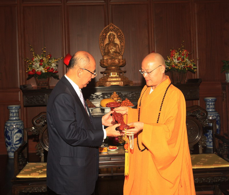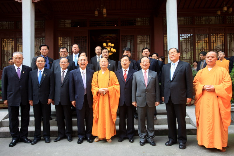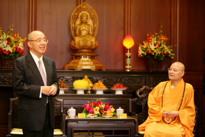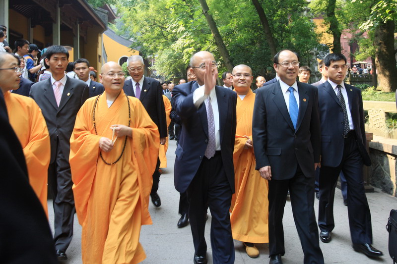 灵隐寺监院光泉法师陪同国民党主席吴伯雄先生参观我寺