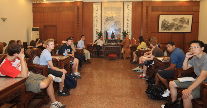 2009年5月30日下午,来自美国亚利桑那州大学各专业的学生一行30多人访问我寺,我寺监院光泉法师热情接待了这些来自美国高校的青年客人们,向他们介绍了灵隐寺的千年历史,以及我寺近年来的发展情况。面对这些异国大学生们的踊跃发问,光泉法师逐一进行了详细的开示,使这些怀着各种各样困惑而来的大学生们,不但得到了满意的答案,而且对佛教有了初步的了解。