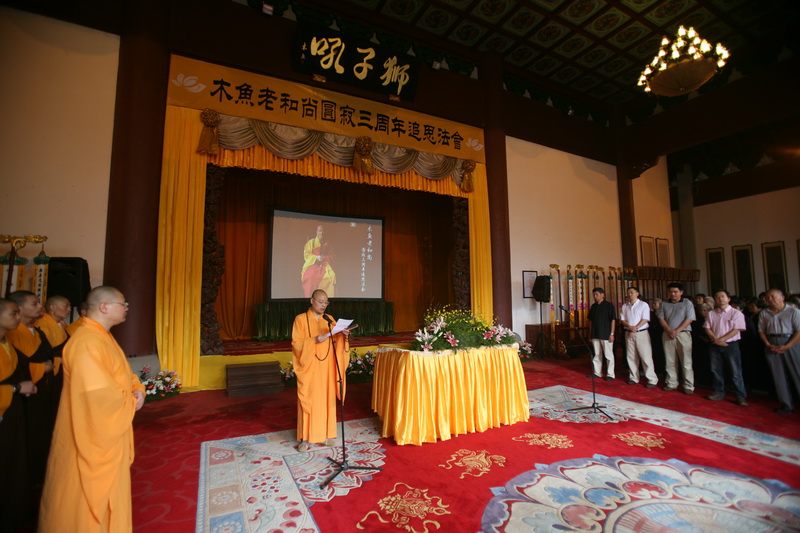 2009年8月23日上午,在杭州市佛教协会会长、灵隐寺监院光泉法师的主持下,灵隐寺"木鱼老和尚圆寂3周年追思法会"在我寺法堂举行,浙江省民宗委副主任邢越生,省委统战部综合处处长倪卫东,杭州市民宗局副局长吴建华、宗教处处长钟芳源、副处长胡胜军,浙江省佛协秘书长徐明仁,杭州市佛协副会长月真法师、智圆法师,杭州市佛协秘书长杜正华等有关参加领导参加了此次法会,参加此次追思法会的还有杭州市属各大寺院和杭州佛学院的法师,以及各位护法居士。