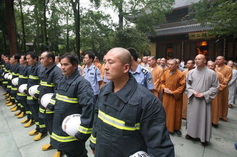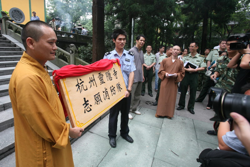 灵隐寺建寺近1700年来,首次成立消防队。昨天,灵隐寺消防队成立首日,寺内举行了消防演习。灵隐寺消防负责人觉恒法师告诉记者:"我们的消防队不但保障寺院消防安全,还可以协助附近白乐桥、天竺等灵隐社区及周边山林防火防灾。"