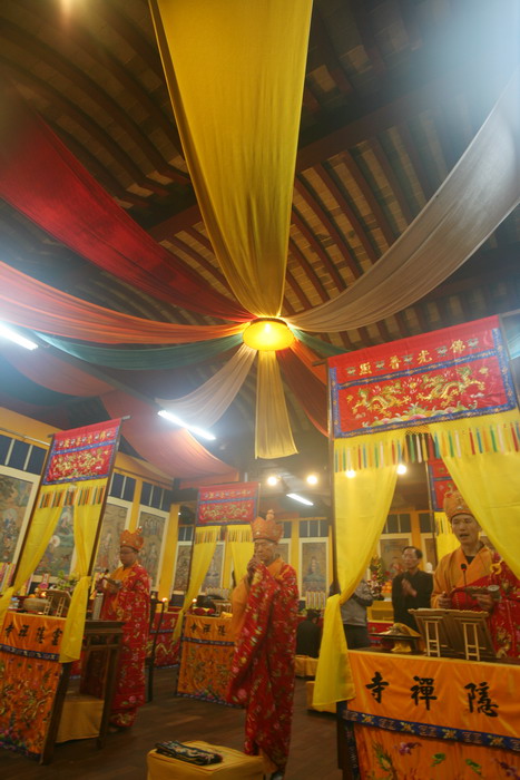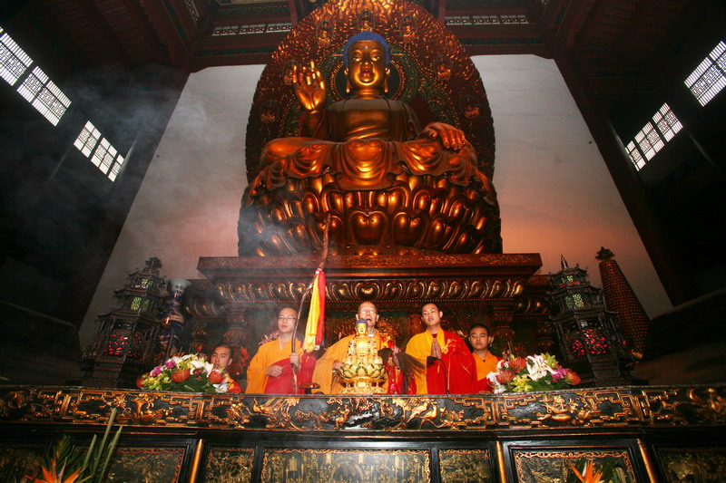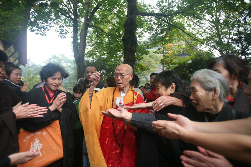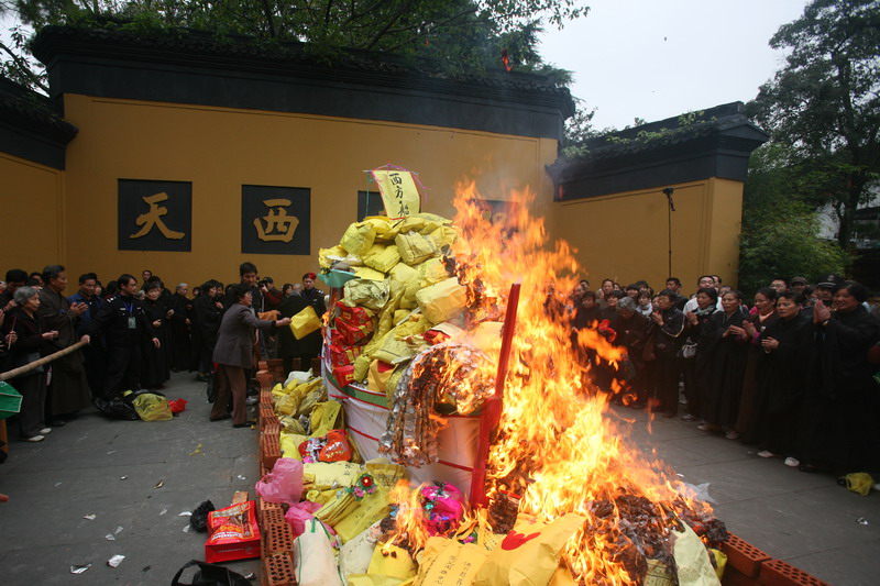11月11日下午,举行了盛大庄严的水陆法会圆满送圣仪式。承载着众生报恩超荐、成佛利生的宏誓大愿的西方彼岸船,在灵隐寺外的"咫尺西天"举火焚化,在主法诸师的带领下,大众法师及护法居士齐声诵念回向。至此,延续七日七夜的灵隐寺"2009年法界圣凡水陆普度大斋胜会"功德圆满。