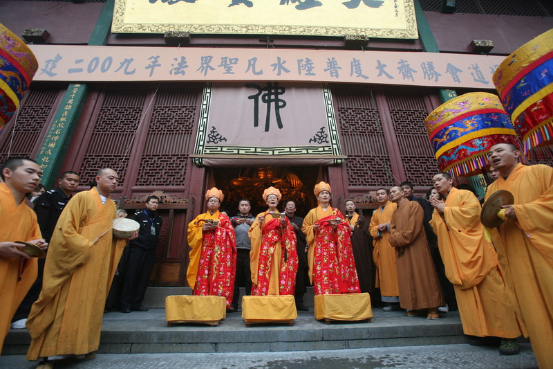 为普济十方法界冥阳有情,灵隐寺于2009年11月4日至11日期间启建"2009年法界圣凡水陆普度大斋胜会"。法会期间,灵隐寺100余位大德法师引领四众于七大坛场举行了诵经、礼忏、持名、请圣、斋天、放生、上供、普佛以及放焰口等各种法事活动,籍此殊胜之因缘,仰仗诸佛菩萨本愿功德,祈愿护法龙天慈悲加持,为信众祈福消灾、报恩超度,以期冥阳两利、福慧双增;并虔诚祝祷世界和平、众生安乐,天佑中华、国运昌隆,社会和谐、国泰民安,人民幸福、六时吉祥!