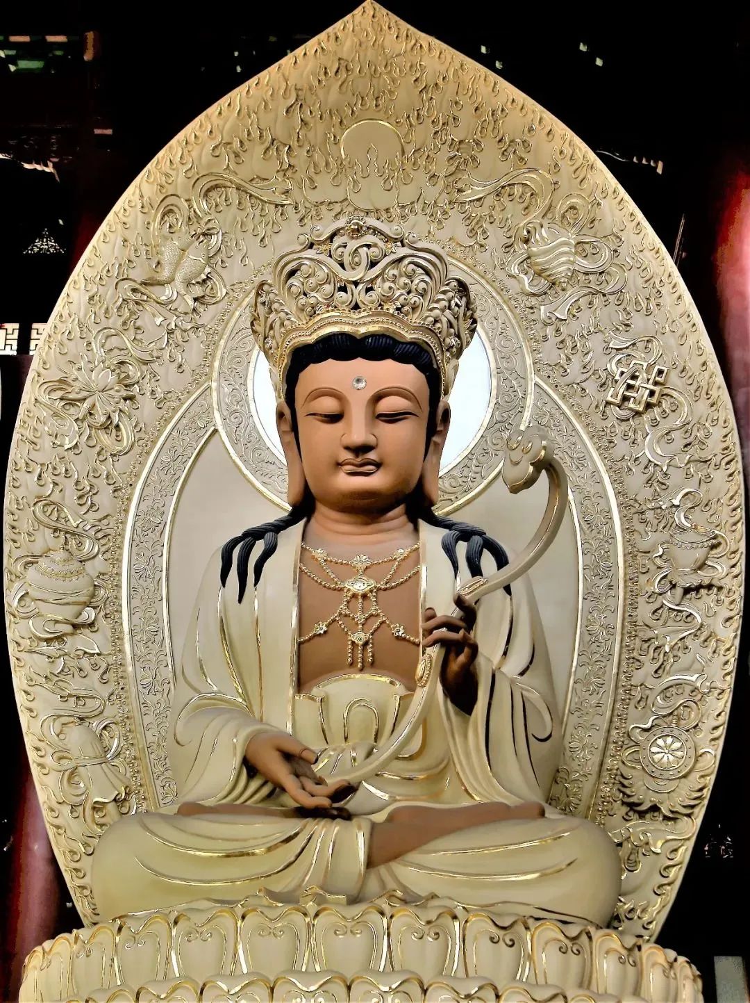 可见,文殊菩萨久远劫前早已成佛,号龙种上佛,且为七佛之师,释迦牟尼佛亦曾亲近,有师生关系;现在北方世界示现成佛,名欢喜摩尼宝积如来;未来于南方离垢世界示现成佛,号普现如来。现在降迹娑婆,是为了以菩萨的身份辅佐释迦牟尼佛教化众生,而且在菩萨众中智慧第一。