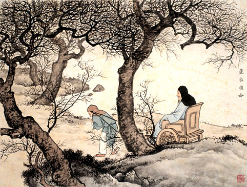 闵损,字子骞,春秋时期鲁国人,孔子的弟子,在孔门中以德行与颜渊并称。孔子曾赞扬他说:"孝哉,闵子骞!"(《论语•先进》)。他生母早死,父亲娶了后妻,又生了两个儿子。继母经常虐待他,冬天,两个弟弟穿着用棉花做的冬衣,却给他穿用芦花做的"棉衣"。