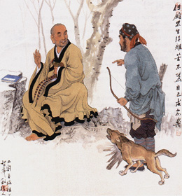禅师带着耐性,无限慈悲地开导着猎人:"它也是一条生命,放过它吧!"