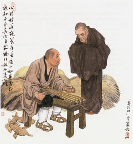 云岩禅师正在编织草鞋的时候,洞山禅师从他身边经过,一见面就说道: