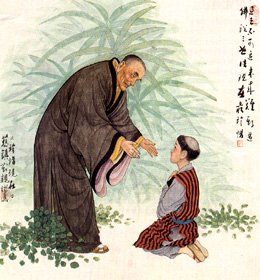 日本亲鸾上人九岁时,就已立下出家的决心,他要求慈镇禅师为他剃度,慈镇禅师就问他说:"你还这么小,为什么要出家呢?"