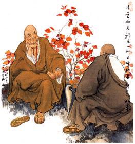 高僧听了他的讲述,一言不发地把她领到一座禅房中,关上门,落锁而去。妇人气得跺脚大骂,骂了许久,高僧也不理会。妇人又开始哀求,高僧仍置若罔闻。妇人终于沉默了。高僧来到门外,问她:"你还生气吗?"