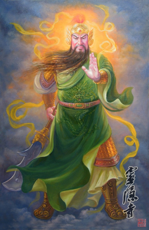 关羽一生忠义勇武,坚贞不二,不为金银财宝所动,被佛、道、儒三教所崇信,乃古今唯一。明清时代,关羽极显,有"武王"、"武圣人"之尊,不但在佛教界担任了警卫局局长,位居伽蓝殿之尊,历代商贾们更是敬佩关公的忠诚和信义,把关公作为他们发财致富的守护神,奉为武财神。
