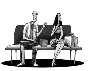 一天晚上,她在机场候机。为了打发几个小时的等候时间,她买了一盒饼干和一本书。她找到一个位子,坐了下来,专心致志地读起了书。突然间,她发现坐在身旁的一个青年男子伸出手,毫无顾忌地抓起放在两人中间的那个盒子里的饼干吃了起来。她不想惹事,便视而不见。