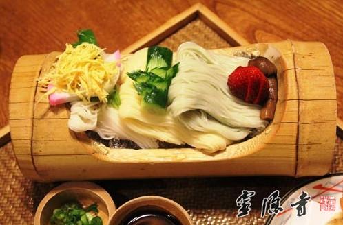 店内所有的客人都屏住呼吸,听那穿和服的妇人慢慢地说:"麻烦……麻烦,汤面,三人份可以吗?"