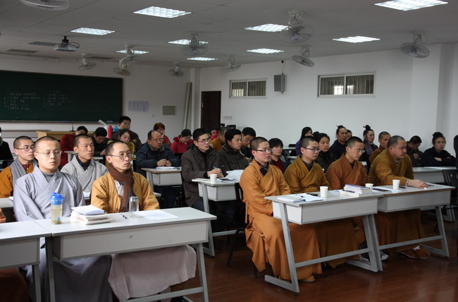 典礼上,杭州市民族宗教事务局吴建华副局长作了重要讲话。他指出,杭州作为历史文化名城,具有很深厚的宗教文化底蕴,在这样的文化大背景下,需要一支"政治上靠得住、学识上有造诣、品行上能服众"的爱国爱教的宗教人才队伍来努力发掘和弘扬宗教教义、宗教道德和宗教文化中有利于社会发展、时代进步的元素,使宗教更好地与社会主义社会相适应,这也是开设此次学历班的目的和初衷。吴局长希望学员们能够珍惜这次学习机会,明确学习目的,努力在增强遵纪守法、爱国爱教的意识上下功夫,在充实知识、提升自身素质上下功夫,并把学习当作一种特殊的修行,"学修结合",努力使自己朝着大师级宗教界人才靠近。