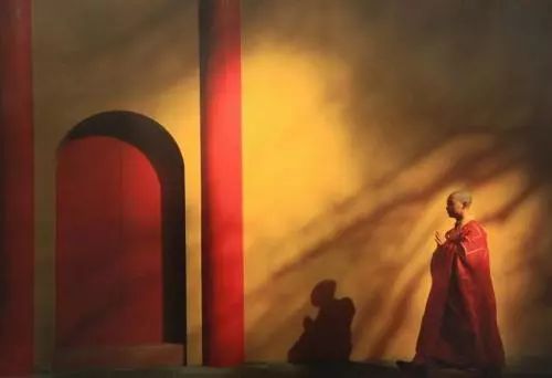 于是梵志们赶紧逃命,却在往下山的路上,看见佛陀在树下专注打坐,背后毫光有如日出,便来到佛前。