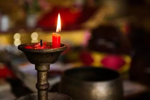 慈悲的佛陀便独自前往私休遮他山,到大树下,盘腿而坐,顿入三昧,身放光明,遍照整片山林。梵志们以为是火烧山,个个恐惧,连忙要灭除火焰,可是用尽所有神通也无法扑灭大火。