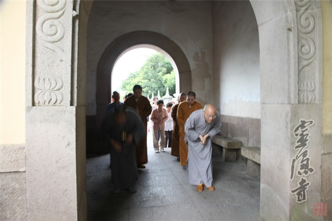 撩衣下拜的那一刻,大和尚甩掉了千年灵隐寺方丈的尊崇身份,融入到了僧俗弟子们一起。通身的汗渍,额头的淤青,虔诚的跪拜,坚定的身影……,这一刻,他走下了神坛,他只是一个普通的出家人,一个虔诚的修行人。这一切,怎能不让真修行人赞叹?怎能不让外道假僧们心生忏悔?